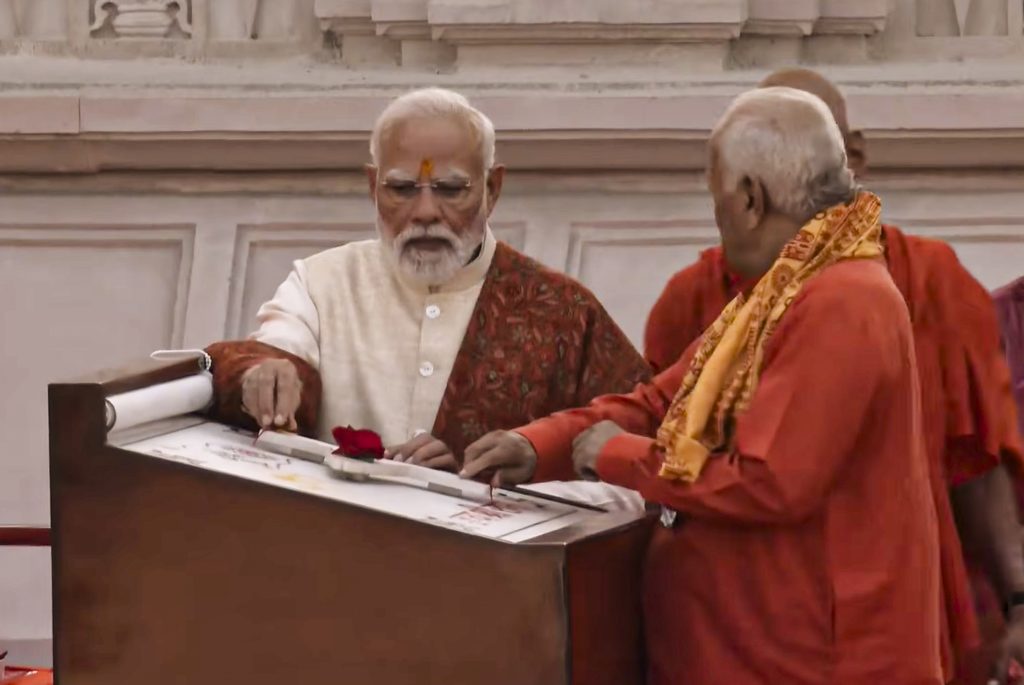 इसके पहले प्रधानमंत्री मोदी सप्त मंदिर पहुंचे और महर्षि वशिष्ठ, महर्षि विश्वामित्र, महर्षि अगस्त्य, महर्षि वाल्मीकि, देवी अहिल्या, निषादराज गुह और माता शबरी मंदिर में भी शीश झुकाये। मोदी ने मां अन्नपूर्णा के भी दर्शन किये। उन्होंने श्रीराम जन्मभूमि मंदिर में पहुंचकर भगवान राम लला की आरती और पूजन किया।