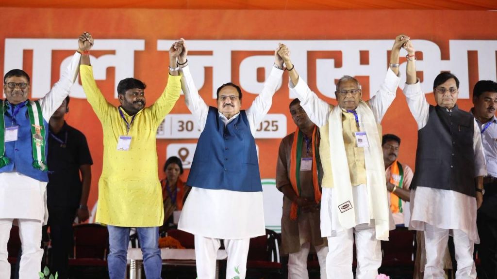 Bihar Election 2025 : भारतीय जनता पार्टी (भाजपा) के अध्यक्ष जेपी नड्डा ने बृहस्पतिवार को कहा कि राष्ट्रीय जनतांत्रिक गठबंधन (राजग) की सरकार के तहत बिहार के विकास ने गति पकड़ी है, जिसने राज्य को अंधकार के युग से निकालकर प्रगति के पथ पर ला दिया है। नालंदा जिले के बख्तियारपुर विधानसभा क्षेत्र में एक रैली को संबोधित करते हुए उन्होंने यह भी दावा किया कि राष्ट्रीय जनता दल (राजद) और उसकी सहयोगी कांग्रेस को लोगों के कल्याण की कोई फ्रिक नहीं है।