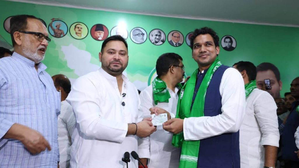 इन नेताओं को पटना में आयोजित एक कार्यक्रम में तेजस्वी यादव ने खुद पार्टी की सदस्यता दिलाई। इस अवसर पर तेजस्वी यादव ने मुख्यमंत्री नीतीश कुमार और जद(यू) पर तीखा हमला करते हुए कहा, “अब बिहार की सरकार पटना से नहीं, बल्कि दिल्ली से चलाई जा रही है। मुख्यमंत्री अस्वस्थ हैं और अगली बार वह कुर्सी पर नहीं बैठ पाएंगे। जद(यू) में बैठे भ्रष्ट ‘साढ़े तीन’ लोगों ने नीतीश कुमार को बर्बाद कर दिया है।”