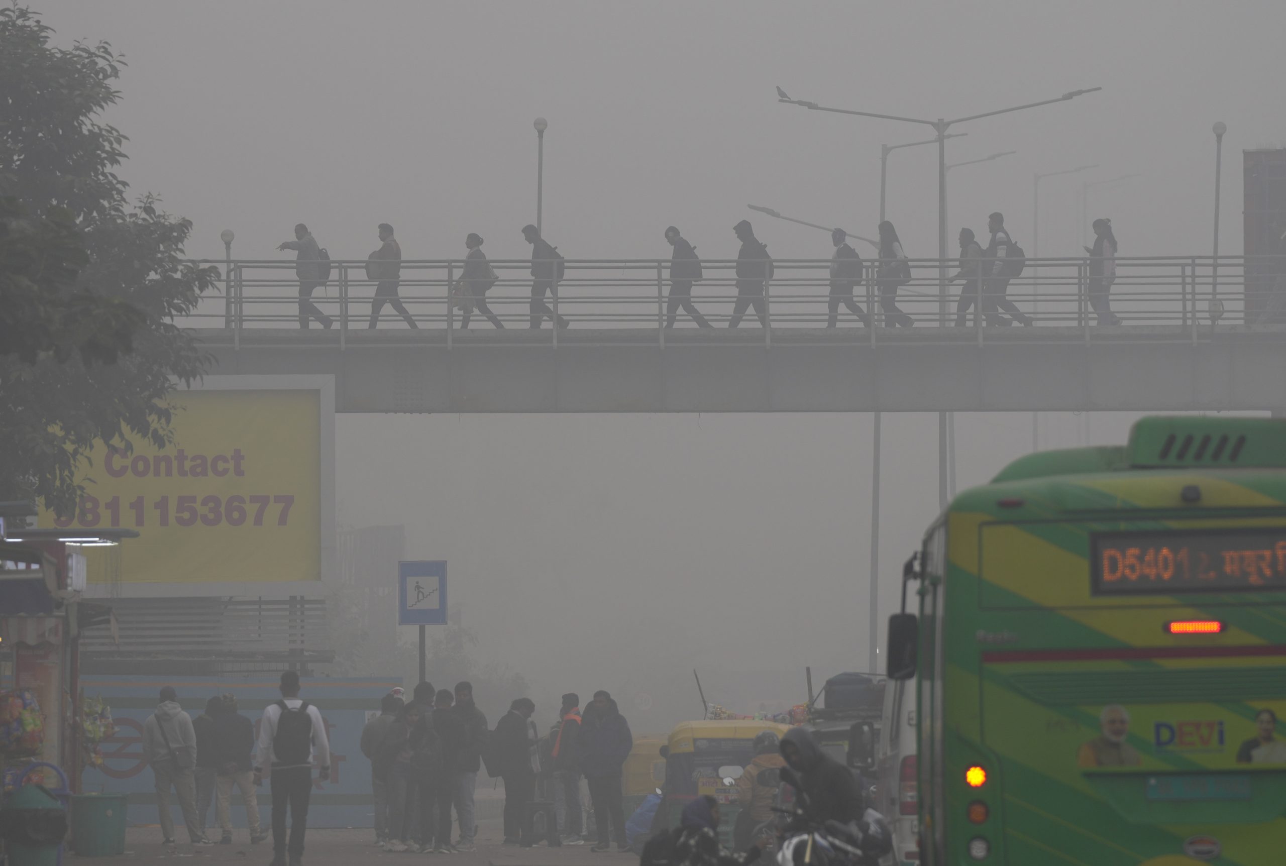 #WATCH दिल्ली: राष्ट्रीय राजधानी में स्मॉग की मोटी परत छाई हुई है। वीडियो सराय काले खां से है। राष्ट्रीय राजधानी में GRAP 4 लागू कर दिया गया है।