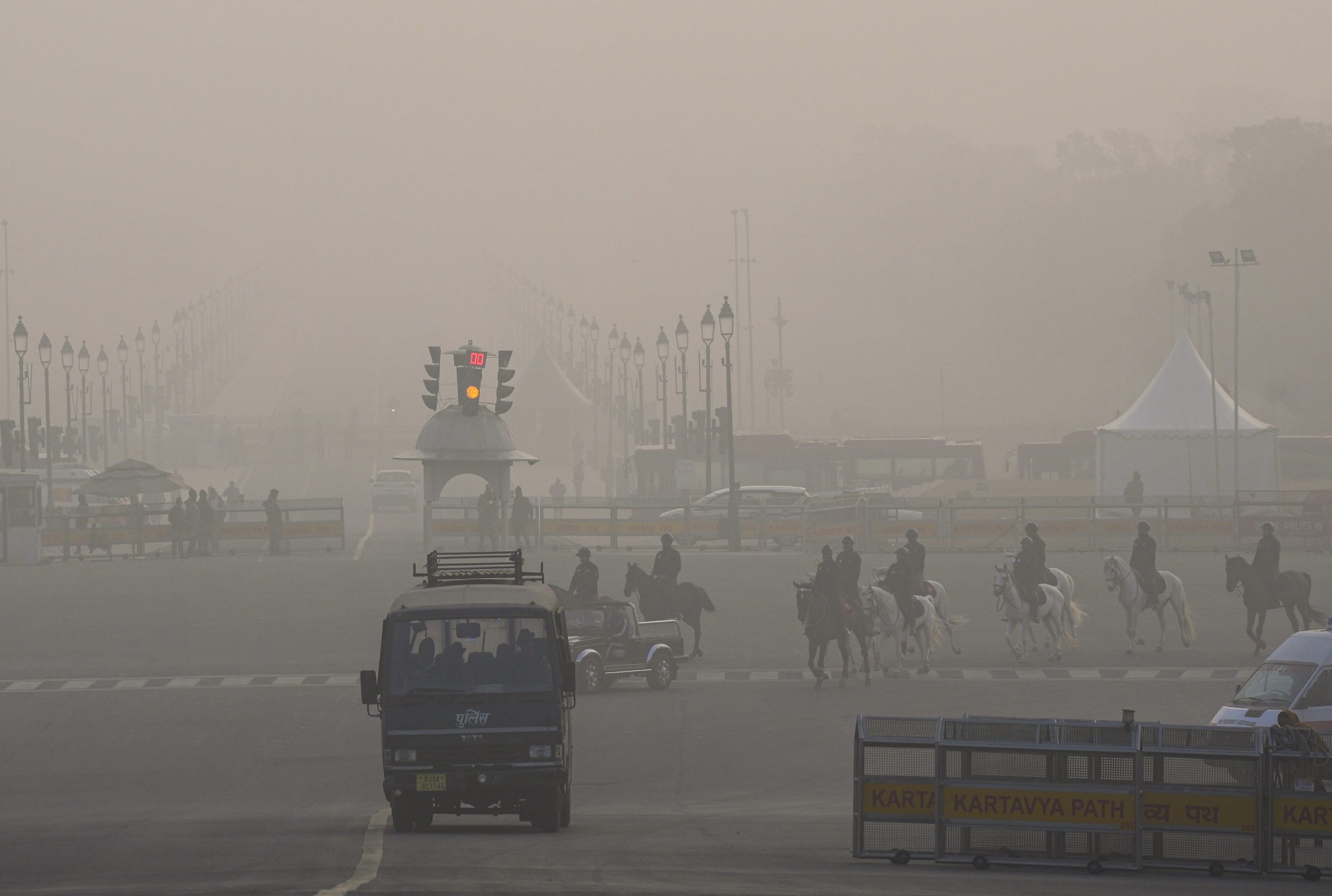#WATCH | दिल्ली: राष्ट्रीय राजधानी के कई इलाकों में स्मॉग की परत छाई हुई है। वीडियो इंडिया गेट के आस-पास से है। दिल्ली-NCR में GRAP-4 लागू है।