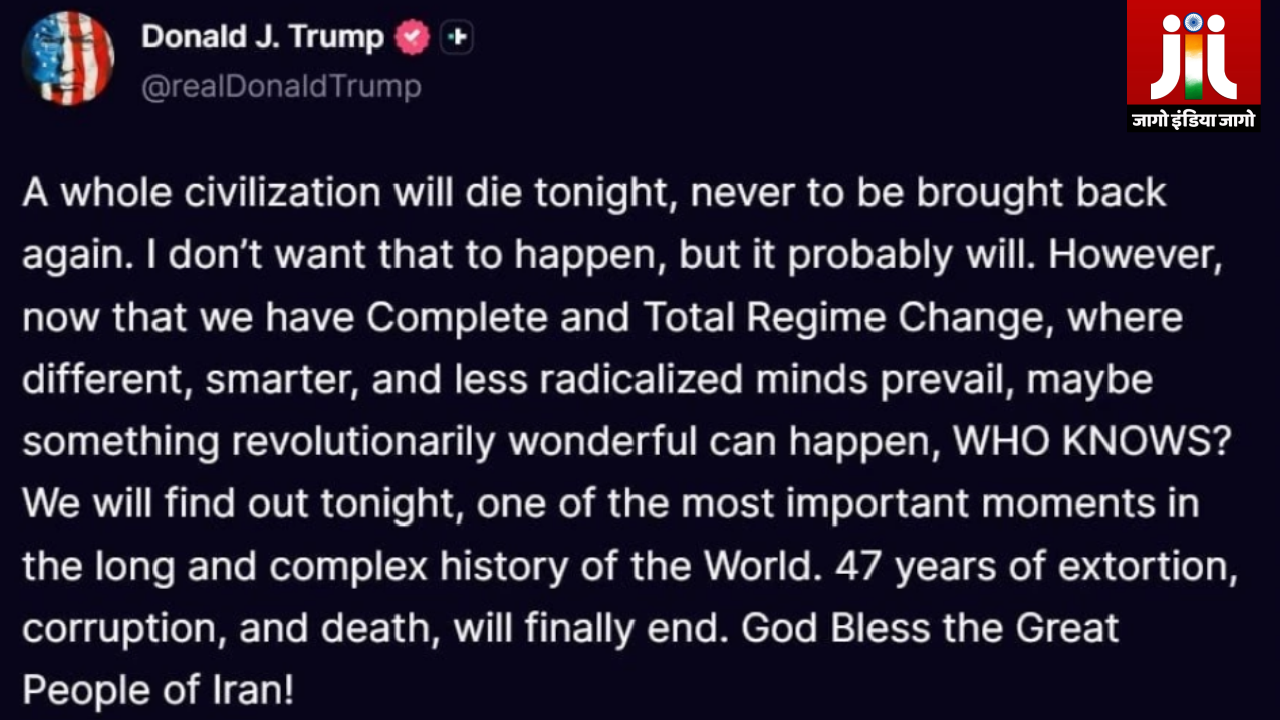 ट्रंप ने सोशल मीडिया पर पोस्ट करते हुए कहा कि अगर हालात नहीं बदले तो आज रात एक सभ्यता खत्म हो सकती है, जिसे फिर कभी वापस नहीं लाया जा सकेगा। उन्होंने कहा कि वह ऐसा नहीं चाहते, लेकिन परिस्थितियां उस दिशा में बढ़ती दिखाई दे रही हैं। अपने बयान में ट्रंप ने यह भी दावा किया कि अब ईरान में सत्ता परिवर्तन हो चुका है और पहले की तुलना में “अधिक समझदार और कम कट्टरपंथी लोग” सामने आ रहे हैं। उन्होंने संकेत दिया कि ईरान में कोई बड़ा क्रांतिकारी कदम उठाया जा सकता है, जिसके नतीजे जल्द ही सामने आ सकते हैं।