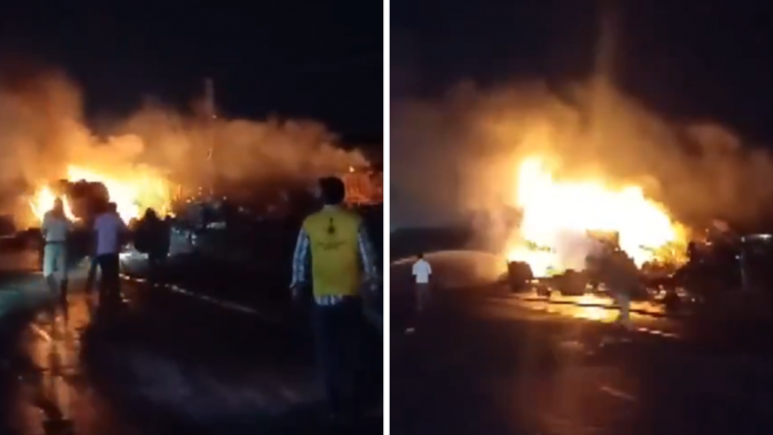 प्रत्यक्षदर्शियों ने बताया कि LPG सिलेंडर ले जा रहा ट्रक सड़क किनारे एक ढाबे के बाहर खड़ा था जबकि चालक खाना खाने के लिए वहां रुका था. ढाबे के पास मौजूद विनोद ने पत्रकारों को बताया, ‘एक अन्य ट्रक ने एलपीजी सिलेंडरों से भरे ट्रक को पीछे से टक्कर मार दी. उस ट्रक के चालक को घायल अवस्था में पास के एक अस्पताल ले जाया गया.’