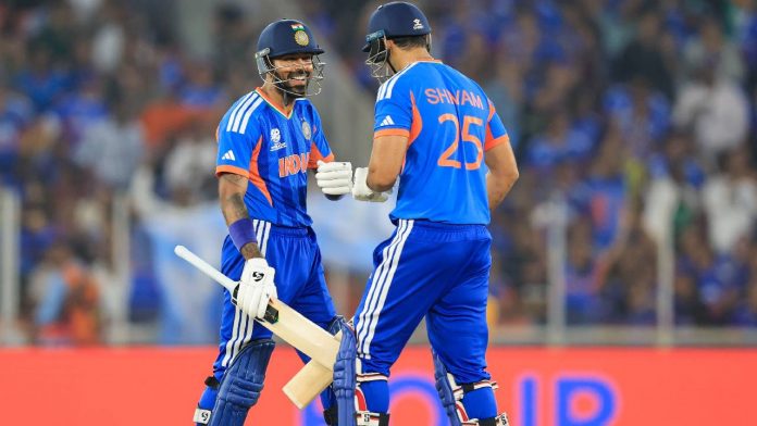 IND vs NED : अहमदाबाद के नरेंद्र मोदी स्टेडियम में खेले जा रहे टी-20 वर्ल्ड कप मुकाबले में भारत ने नीदरलैंड के खिलाफ 20 ओवर में 6 विकेट पर 193 रन बनाए। कप्तान सूर्यकुमार यादव ने 34 रन की पारी खेली, जबकि तिलक वर्मा ने 31 रन जोड़े। ऑलराउंडर हार्दिक पंड्या आखिरी गेंद पर कैच आउट हो गए।पावरप्ले में भारत को झटका लगा, जब अभिषेक शर्मा शून्य और ईशान किशन 18 रन बनाकर आउट हुए। भारत ने टॉस जीतकर पहले बल्लेबाजी चुनी थी।