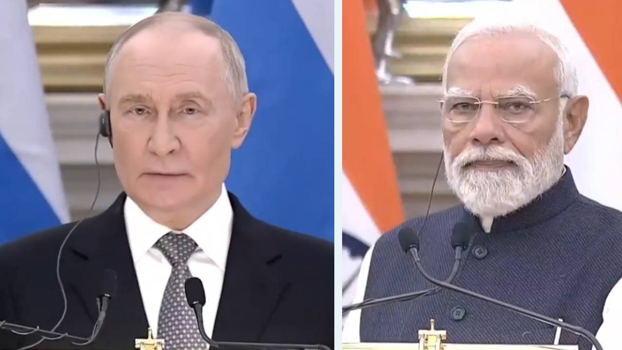 #WATCH दिल्ली: भारत-रूस बिज़नेस फोरम में PM नरेंद्र मोदी ने कहा, "राष्ट्रपति पुतिन और मैंने 2030 तक द्विपक्षीय व्यापार के लिए $100 बिलियन के टारगेट को पार करने का टारगेट रखा है। लेकिन कल से राष्ट्रपति पुतिन के साथ मेरी बातचीत और जो संभावना हम देख रहे हैं, मुझे नहीं लगता कि हमें… pic.twitter.com/HugfXmDSL1