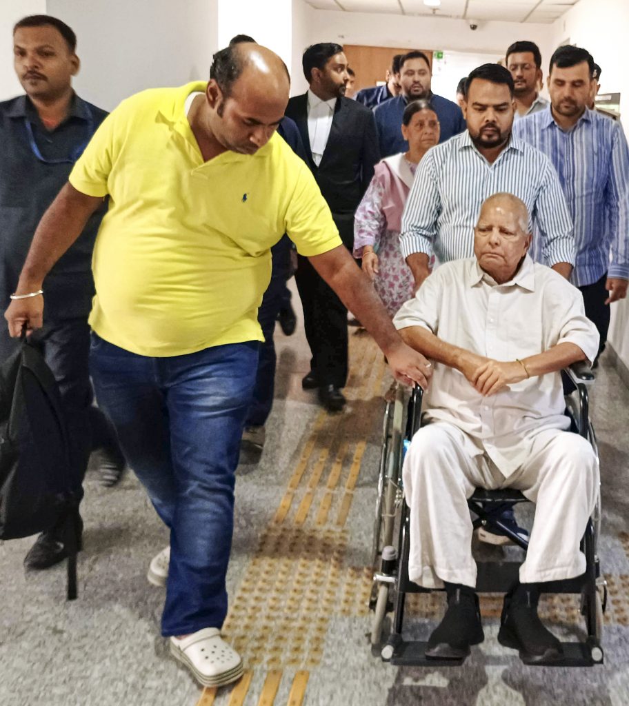 #WATCH | Delhi: RJD chief and former Bihar CM Lalu Prasad Yadav, along with his wife and former Bihar CM Rabri Devi, leave from the Rouse Avenue Court. https://t.co/F9E3EhYNzk pic.twitter.com/wMwxIYn463