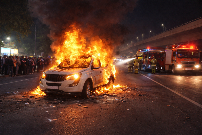 Jaipur Car Fire: जयपुर में बुधवार रात चलती एक XUV कार में अचानक आग के गोले में तब्दील हो गई. घटना से हड़कंप मच गया. कार सवार दंपति ने कार से कूदकर अपनी जान बचाई. घटना बुधवार रात 10.30 बजे दुर्गापुरा पुलिया के पास होप अस्पताल के पास हुई. सूचना पर पहुंची बजाज नगर पुलिस ने दमकल की 2 गाड़ियों की मदद से आग पर काबू पा लिया.
