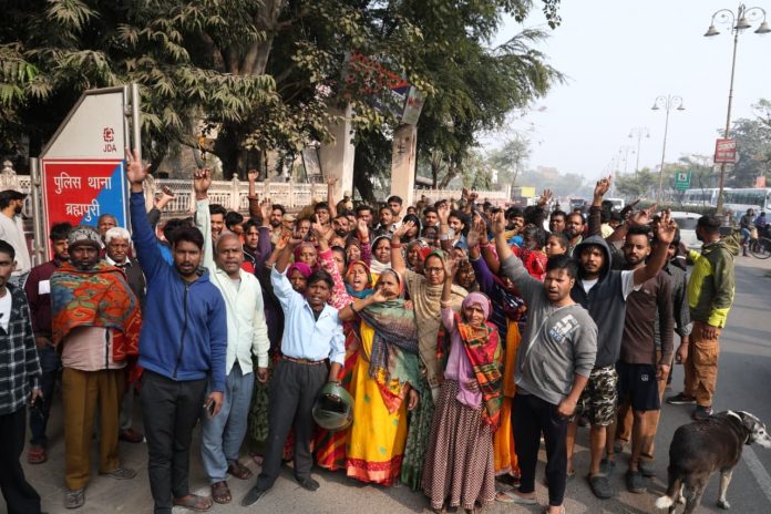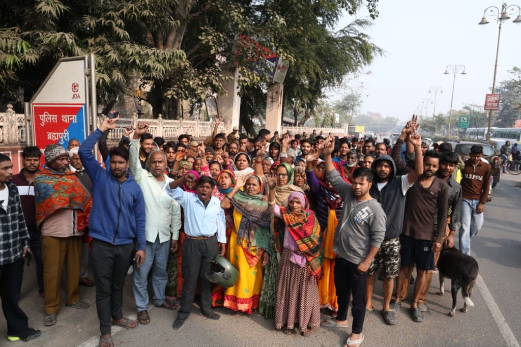 स्थानीय लोगों ने थाने के बाहर किया विरोध प्रदर्शन