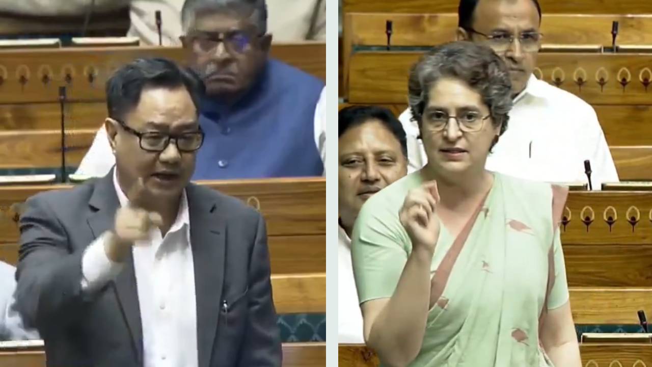 रीजीजू का भाषण समाप्त होने के बाद पीठासीन सभापति कृष्णा प्रसाद तेन्नेटी ने कांग्रेस सांसद प्रियंका गांधी से कहा, ‘‘आपका नाम लिया गया और आपकी तारीफ ( रीजीजू द्वारा) की जा रही थी, आप कुछ बोलना चाहती हैं तो बोल सकती हैं।’’ प्रियंका ने कहा कि मंत्री ने तारीफ करते-करते कह दिया कि ‘‘मैं उनकी बातों पर हंस रही थी तो मैं स्पष्ट करना चाहती हूं कि मैं क्यों हंस रही थी। मैं इसलिए हंस रही थी कि जिन नेहरूजी की आलोचना ये दिन-रात करते हैं, आज उनका एक बयान इन्होंने अपने पक्ष में दे दिया। नेहरूजी का अचानक आदर करने लगे। अचानक कह दिया कि लोकतंत्र को मजबूत करने वाले नेहरूजी ही हैं।’’