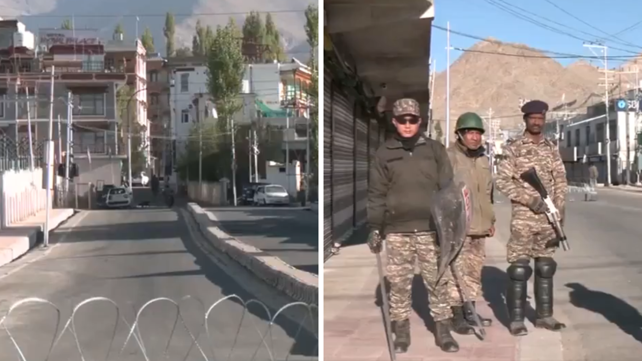 #WATCH लद्दाख: 24 सितंबर को लेह में हुई हिंसा के बाद भारतीय नागरिक सुरक्षा संहिता, 2023 की धारा 163 के तहत निषेधाज्ञा लागू है। ज़िले में पाँच या अधिक व्यक्तियों के एकत्र होने पर प्रतिबंध है। बिना पूर्व लिखित अनुमति के कोई भी जुलूस, रैली या मार्च नहीं निकाला जा सकता। यहाँ… pic.twitter.com/RcUy41UFZk