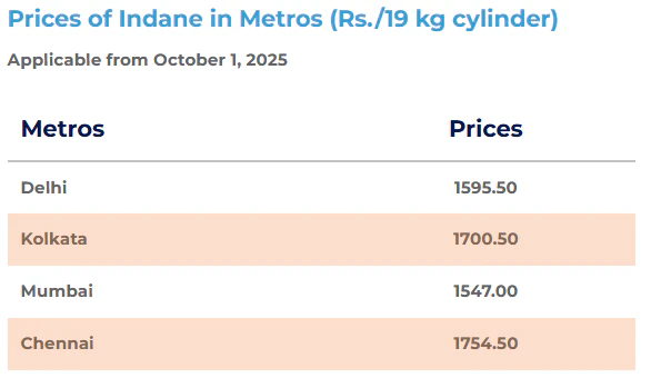 LPG Price Hike: महानवमी पर महंगाई का बड़ा झटका लगा है. आज यानि 1 अक्टूबर से गैस सिलेंडर महंगा हो गया है. ऑयल मार्केटिंक कंपनियों ने 19 किलो वाले कमर्शियल गैस सिलेंडर के दाम 15.50 रुपए बढ़ा दिए हैं. हालांकि राहत की बात यह है कि 14.2 किलो वाले घरेलू गैस सिलेंडर के दामों में कोई बदलाव नहीं किया गया है. आइए आपको बताते हैं कि अब आपके शहर में कमर्शियल सिलेंडर कितने में मिलेगा.