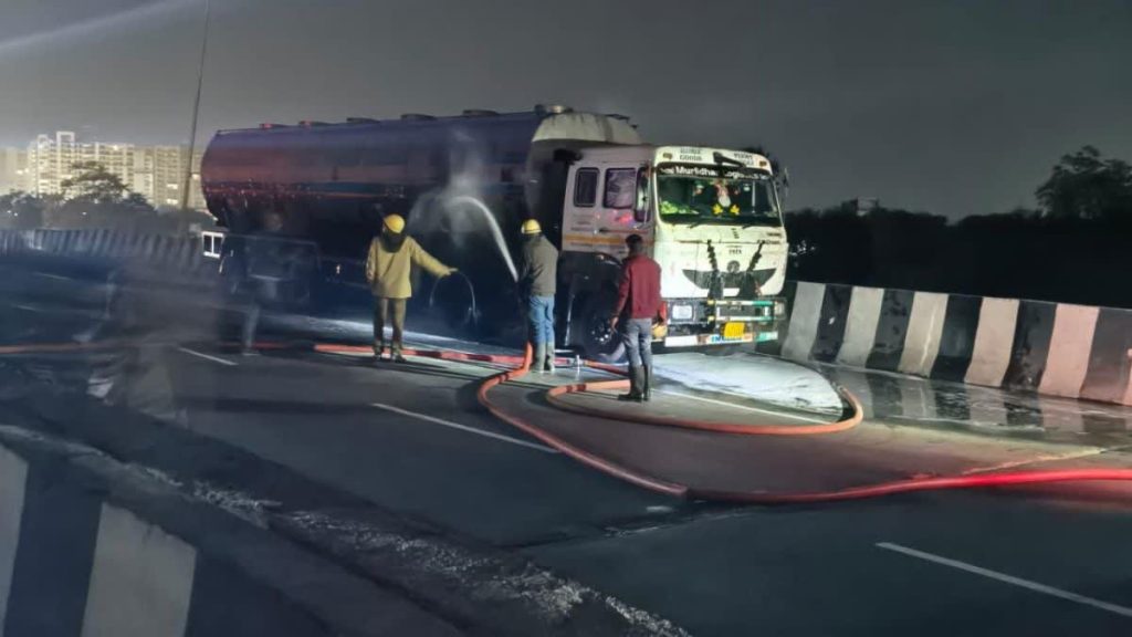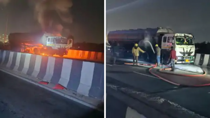 जयपुर की ओर जा रहे टैंकर में लगी आग