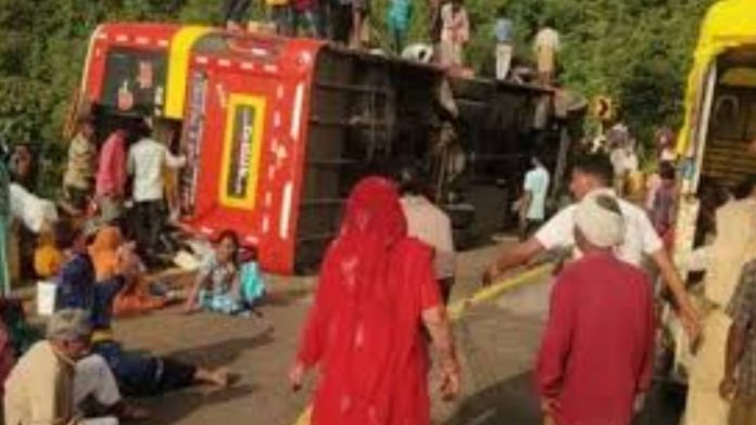 बस हादसे में एक महिला की मौत, 15 घायल अस्पताल में भर्ती