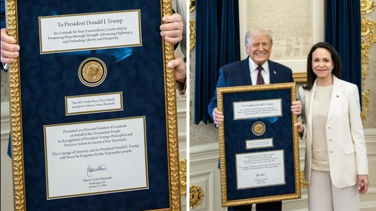 ट्रंप ने बाद में सोशल मीडिया पर पुष्टि की मचाडो ने यह पदक उन्हें दिया है. उन्होंने कहा कि मचाडो से मिलना उनके लिए सम्मान की बात है. ट्रंप ने अपने पोस्ट में कहा, ‘वह एक बेहतरीन महिला हैं जिन्होंने बहुत कुछ झेला है. मारिया ने मेरे किए गए काम के लिए मुझे अपना नोबेल शांति पुरस्कार दिया. यह आपसी सम्मान का कितना अद्भुत भाव है. धन्यवाद मारिया.’