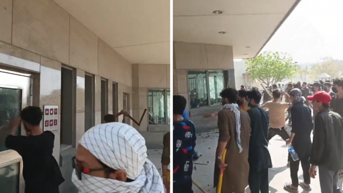 #BREAKING: US Consulate in Karachi under attack in Trump’s favourite country Pakistan. Protestors have barged in and destroyed building and set portions on fire.