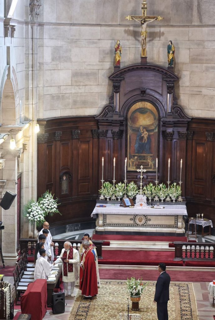 मोदी ने सोशल मीडिया मंच ‘एक्स’ पर एक पोस्ट में कहा, ‘मैंने दिल्ली के ‘कैथेड्रल चर्च ऑफ द रिडेम्पशन’ में क्रिसमस की सुबह की प्रार्थना में हिस्सा लिया. प्रार्थना में प्रेम, शांति और करुणा का शाश्वत संदेश झलक रहा था. आशा है कि क्रिसमस की भावना हमारे समाज में सद्भाव और सामंजस्य को प्रेरित करेगी.’