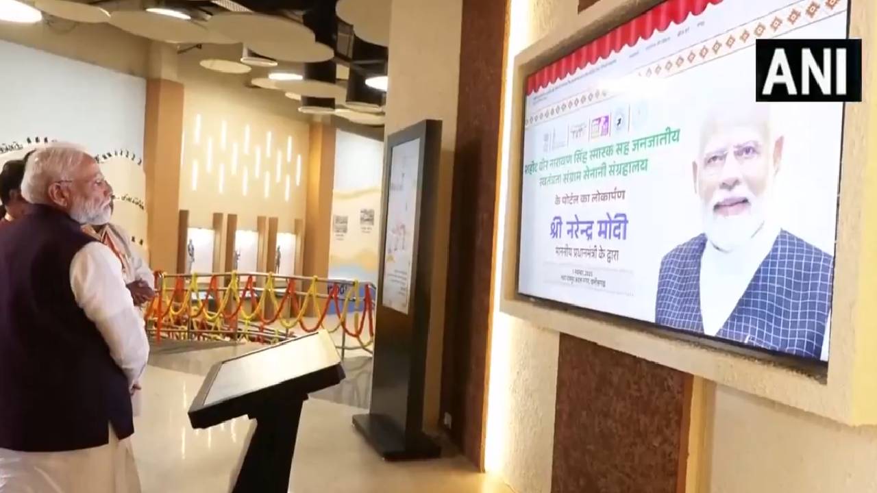 #WATCH | नवा रायपुर, छत्तीसगढ़: प्रधानमंत्री नरेंद्र मोदी ने शहीद वीर नारायण सिंह स्मारक और जनजातीय स्वतंत्रता सेनानी संग्रहालय का उद्घाटन और अवलोकन किया।