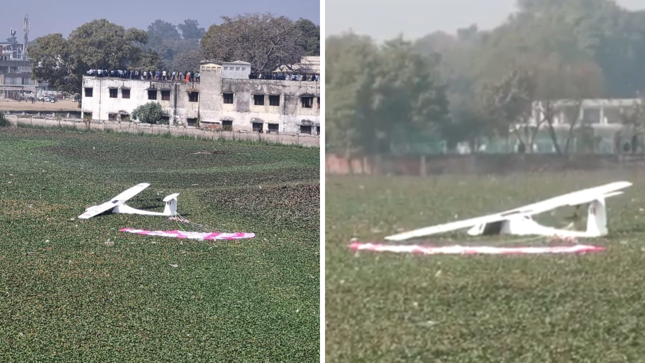 #WATCH | A trainee aircraft of the Indian Air Force crashes into a pond in Prayagraj, Uttar Pradesh