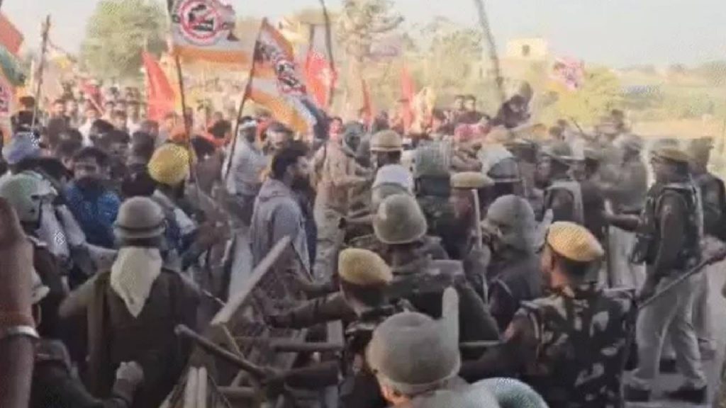 पुलिस ने प्रदर्शनकारियों को खदेड़ने के लिए बल प्रयोग किया, जिसके बाद दोनों पक्षों के बीच झड़प हुई। पुलिस ने लाठीचार्ज और आंसू गैस के गोले दागे। गुस्साए किसानों ने पुलिस जीप और कई गाड़ियों सहित एक दर्जन से ज्यादा गाड़ियों में कथित तौर पर आग लगा दी। इस विरोध प्रदर्शन के दौरान महिलाओं सहित 50 से ज्यादा लोग घायल हो गए। कांग्रेस विधायक अभिमन्यु पूनिया को लाठीचार्ज के दौरान सिर में चोट लगी और उन्हें हनुमानगढ़ जिला अस्पताल ले जाया गया।