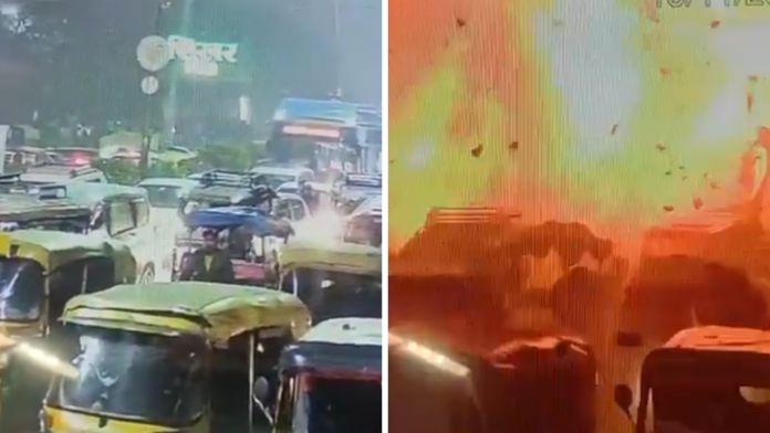 लाल किले के पास सोमवार शाम को भारी ट्रैफिक के बीच हुंदै आई20 कार में विस्फोट का एक नया CCTV फुटेज सामने आया है, फुटेज में कार को ऑटो, ई-रिक्शा और अन्य वाहनों के बीच धीरे-धीरे चलते हुए देखा जा सकता है, और फिर अचानक वह आग की लपटों में घिर जाती है.