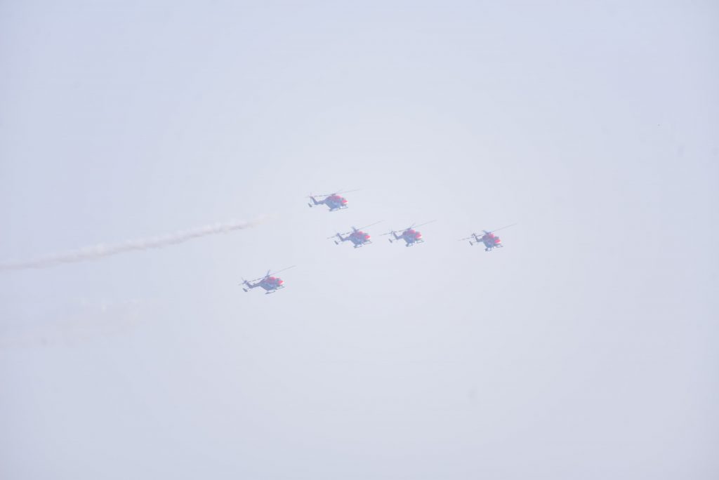 ‘सारंग’ टीम ने अपनी विशिष्ट समन्वित कलाबाजियों से दुनिया भर के दर्शकों को मंत्रमुग्ध किया है. टीम ने वर्ष 2004 में सिंगापुर में एशियन एयरोस्पेस शो में अंतरराष्ट्रीय मंच पर डेब्यू किया और तब से अब तक विश्व के 390 से अधिक स्थानों पर 1,200 से ज्यादा प्रदर्शन कर चुकी है. सारंग टीम स्वदेशी रूप से निर्मित ‘ध्रुव’ एडवांस्ड लाइट हेलिकॉप्टर (ALH) पर उड़ान भरती है.