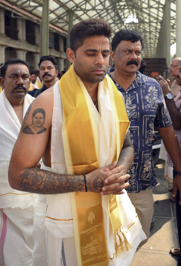 सूत्रों के मुताबिक, खिलाड़ी मंदिर के लिए पारंपरिक परिधान में पहुंचे. इस समूह में भारत के टी20 कप्तान सूर्यकुमार यादव, ऑलराउंडर अक्षर पटेल और बल्लेबाज रिंकू सिंह और वरुण चक्रवर्ती शामिल थे. इसके अलावा गेंदबाज कुलदीप यादव और रवि बिश्नोई तथा फील्डिंग कोच टी दिलीप भी मंदिर दर्शन के लिए पहुंचे.