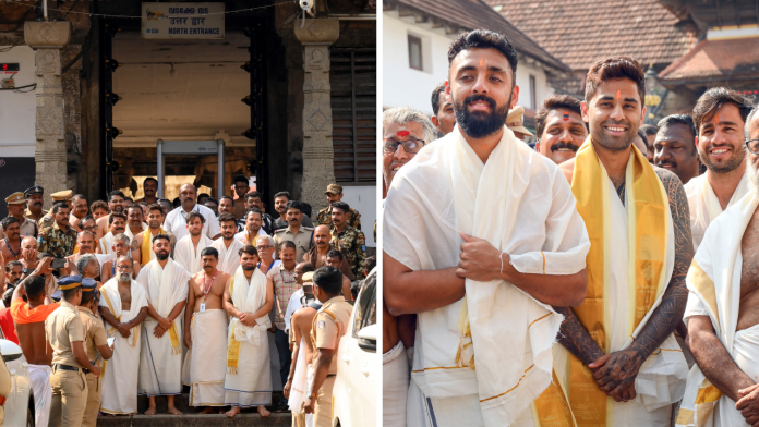 सूत्रों के मुताबिक, खिलाड़ी मंदिर के लिए पारंपरिक परिधान में पहुंचे. इस समूह में भारत के टी20 कप्तान सूर्यकुमार यादव, ऑलराउंडर अक्षर पटेल और बल्लेबाज रिंकू सिंह और वरुण चक्रवर्ती शामिल थे. इसके अलावा गेंदबाज कुलदीप यादव और रवि बिश्नोई तथा फील्डिंग कोच टी दिलीप भी मंदिर दर्शन के लिए पहुंचे.