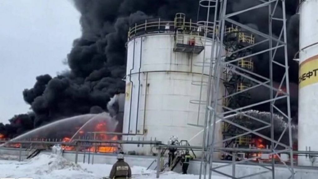 Ukraine-Russia War : कीव। यूक्रेन के ड्रोन हमले के कारण रूस के दक्षिणी वोल्गोग्राद क्षेत्र में एक तेल डिपो में आग लग गई। अधिकारियों ने यह जानकारी दी। वोल्गोग्राद के गवर्नर ने ‘टेलीग्राम’ चैनल पर एक पोस्ट में कहा कि घटना में किसी के हताहत होने की कोई सूचना नहीं है। पोस्ट में नुकसान का विवरण नहीं दिया गया है, लेकिन कहा गया है कि डिपो के पास रहने वाले लोगों को निकालना पड़ सकता है।