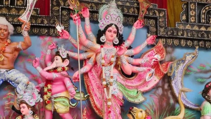 दुर्गा पूजा पंडाल में लाठीचार्ज